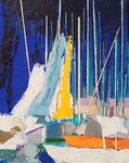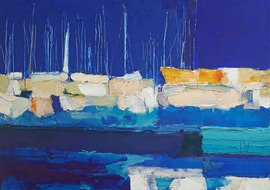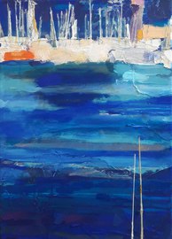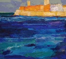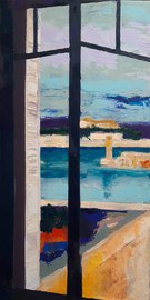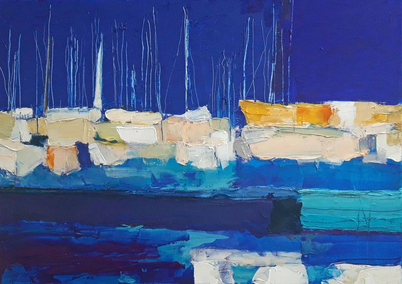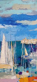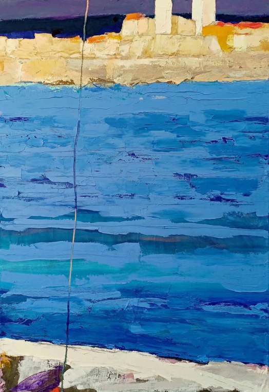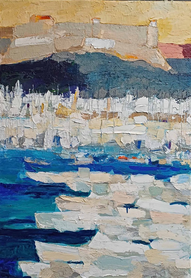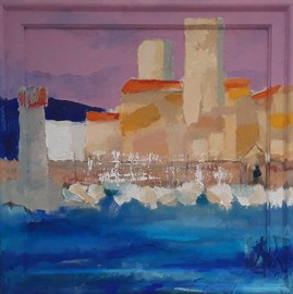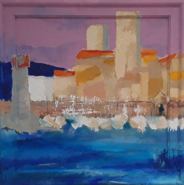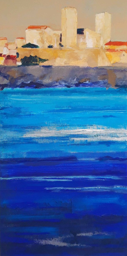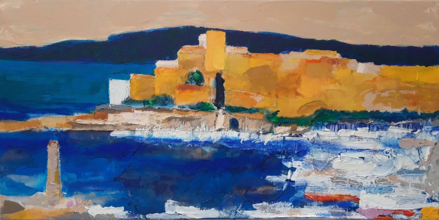 Antibes: le port et le Fort Carré, 2023, huile, acrylique, grattage sur toile, 100 x 70 cm
