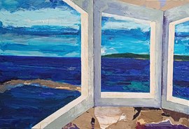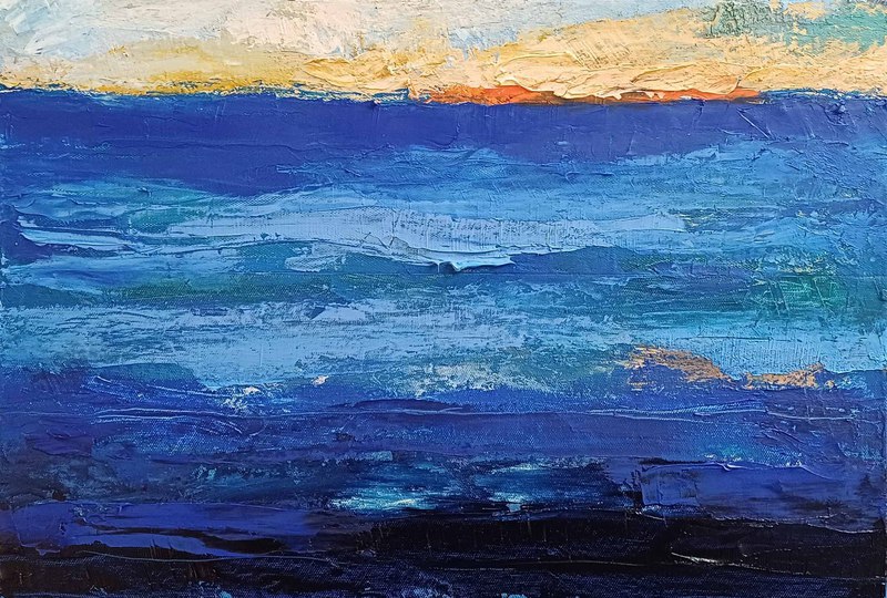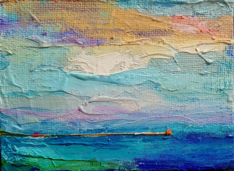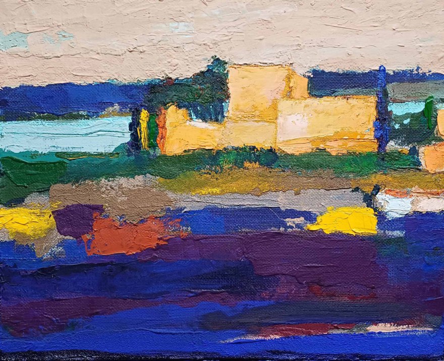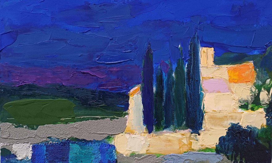 Ciel provençal, 2024, huile, acrylique sur toile marouflée sur aggloméré, 36,5 cm x 45 cm