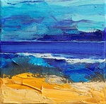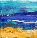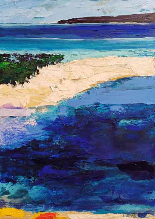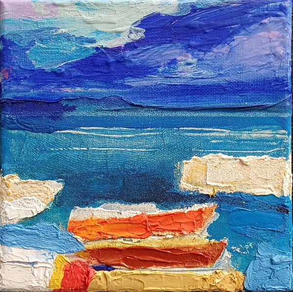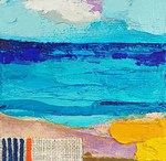 Plage du Lavandou, 2024, huile, acrylique, collage sur toile marouflée sur aggloméré, 60 cm x 80 cm
