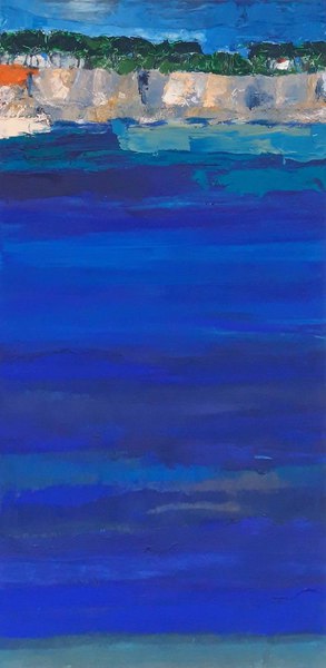 Antibes, le port et la maison Ardouin (I), 2022, acrylique, huile, collage sur toile, 50 x 100 cm