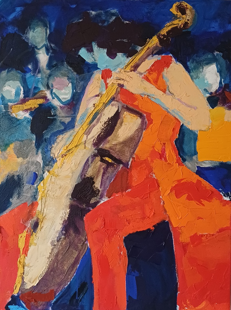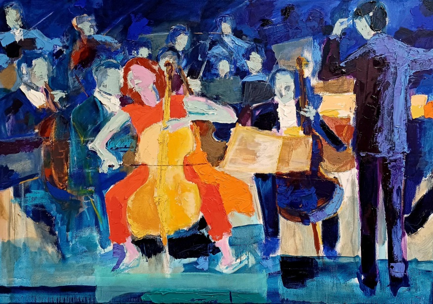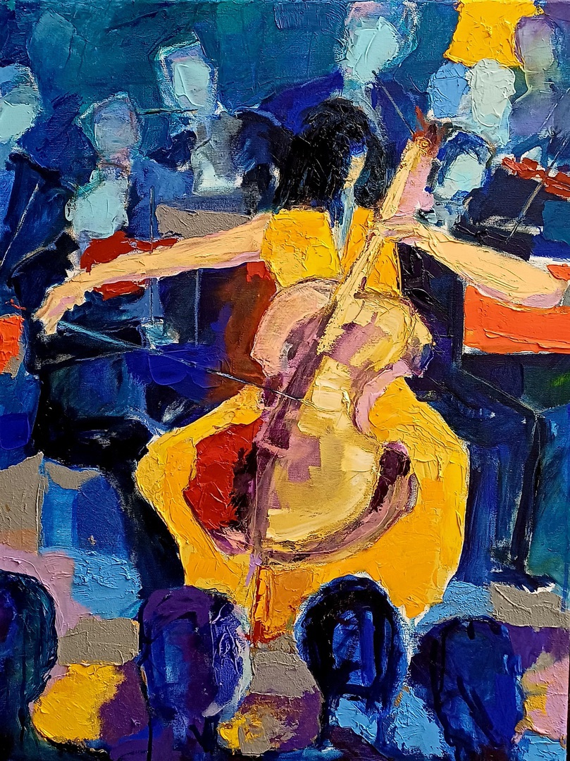 Concerto pour violoncelle II (pour Anastasia Kobekina), 2025, huile, pastel à l'huile et acrylique sur toile, 70 x 100 cm