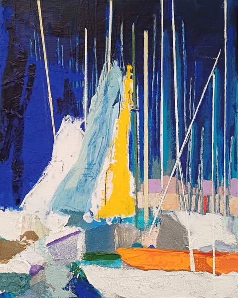 Antibes, 2022, acrylique, huile, collage sur toile,